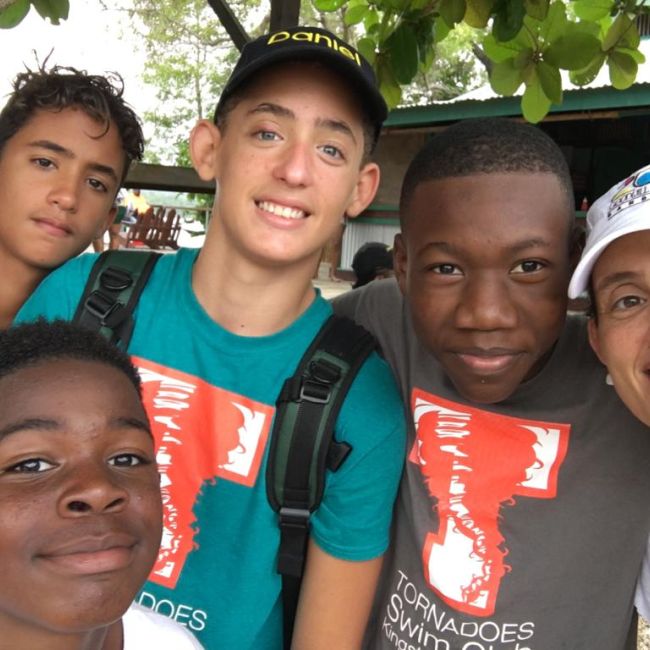 We shared the meet with our guests from Cayman, Seven Mile Swimmers, who fitted right in with their orange and blue team colours. Everyday they shared their appreciation for our hospitality. They even had sorrel and christmas cake. Also sharing our great hospitality was Brady Lewison from Canada and Nicholas Haughton home from Howard University.