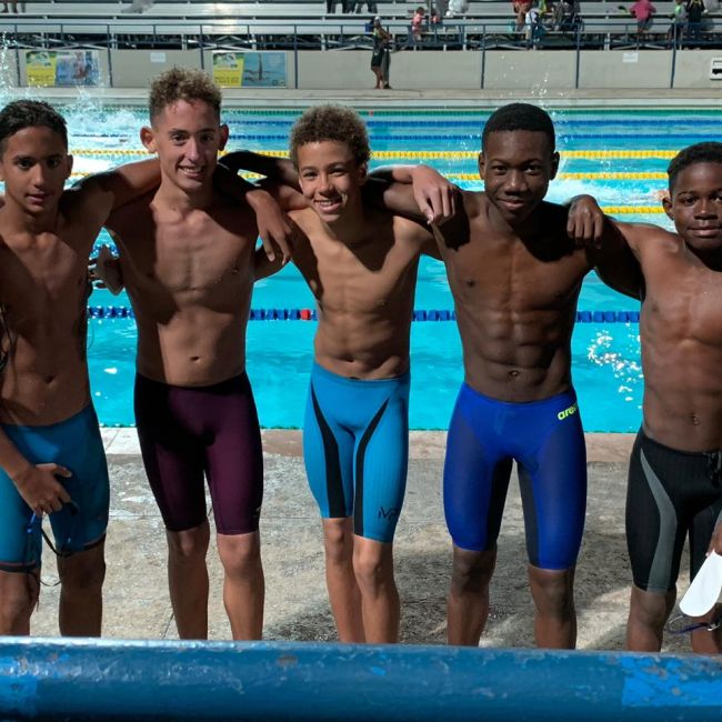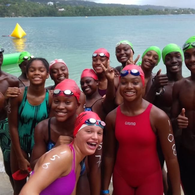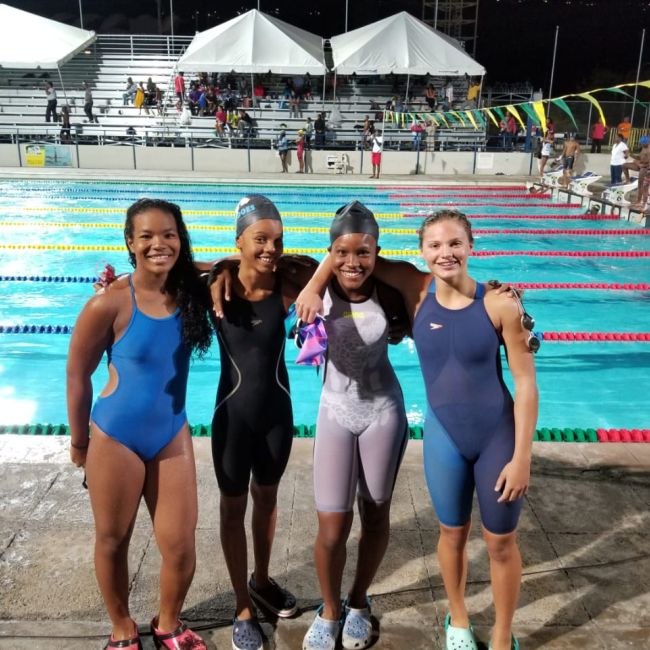 We shared the meet with our guests from Cayman, Seven Mile Swimmers, who fitted right in with their orange and blue team colours. Everyday they shared their appreciation for our hospitality. They even had sorrel and christmas cake. Also sharing our great hospitality was Brady Lewison from Canada and Nicholas Haughton home from Howard University.